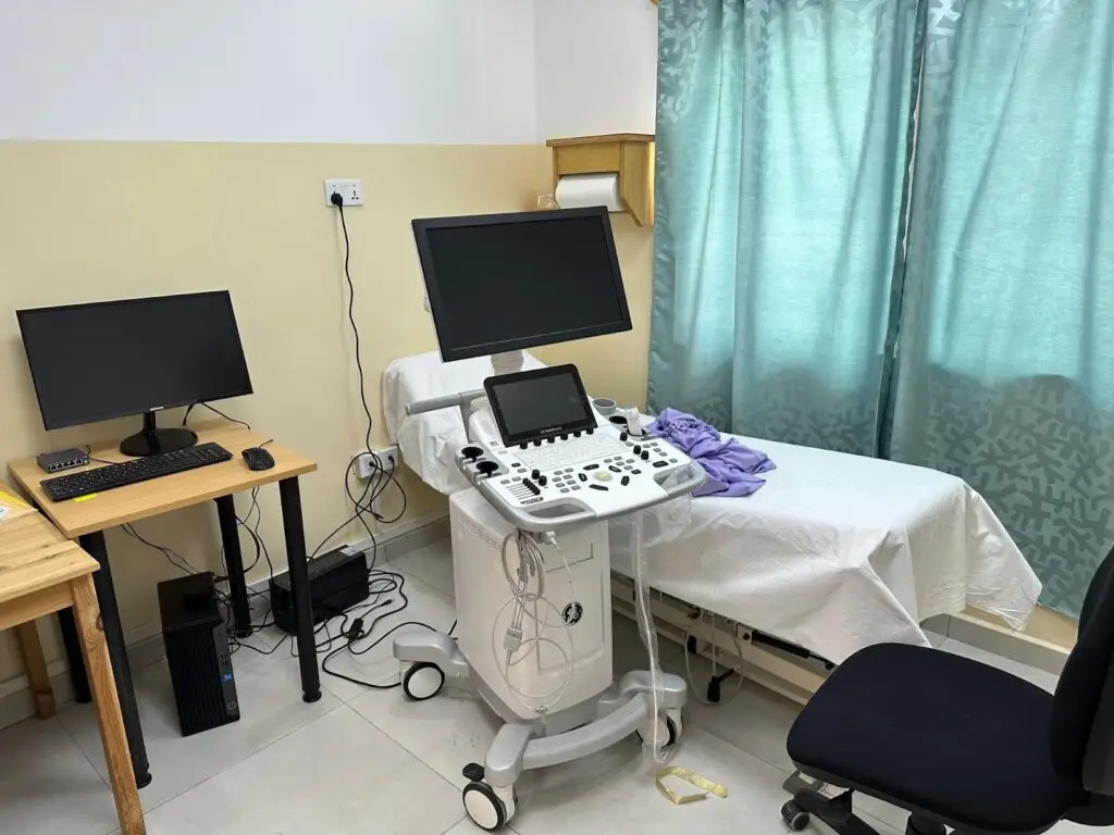 Det er levert utstyr fra norske sykehus til klinikken. GE Healthcare har donert hjerte- ultralyd maskiner, Scanmed donerte annet medisinsk utstyr. Hjerte-ultralyd maskinene har topp moderne programvare og er helt på øverste hylle av denne typen utstyr. Sammen med personell på hjerte klinikken sender vi en varm takk til alle som har donert utstyr og materiell til sykehuset.